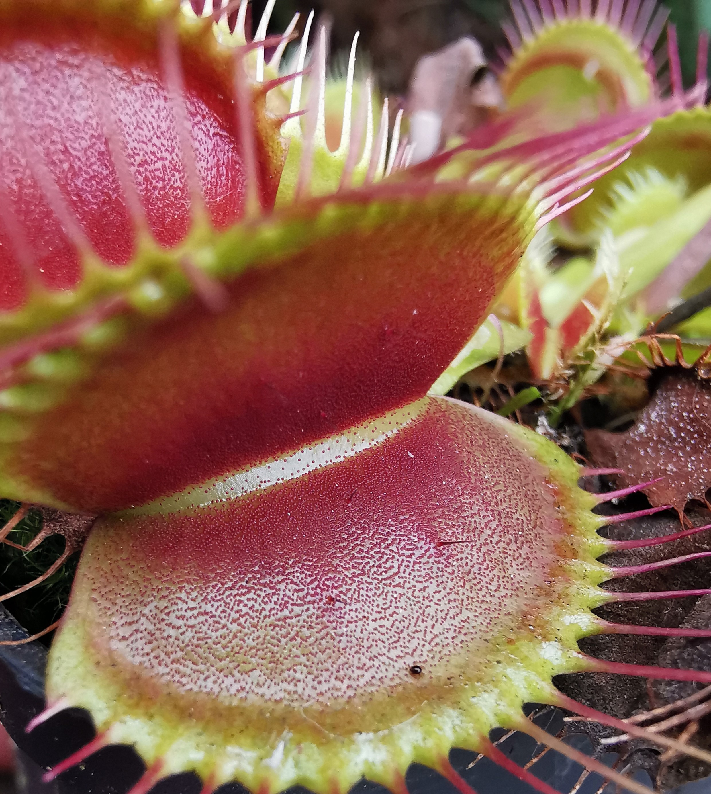 Venusfliegenfallen sind auch Fliegen und Spinnen spezialisiert und schließen mit einer der schnellsten Bewegungen im Pflanzenreich, weshalb es für die gefangenen Insekten kaum ein Entkommen gibt.